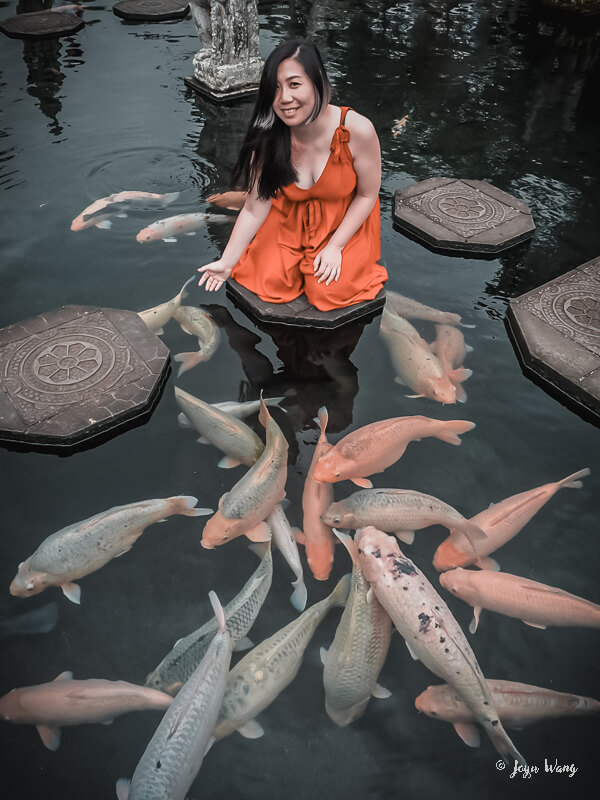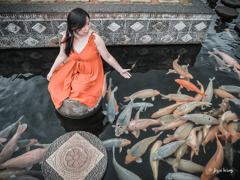 寫在最前面,當時其實是在查景點時發現這邊與金魚一起拍照畫面很夢幻,但同時又矛盾的覺得遊客為了拍照餵食對金魚來說真的是太殘忍。好在(?)實際造訪時發現幽趣的現象,我們在好不容易拍完天堂之門之後造訪已經是下午,金魚看到人就躲!起!來!認真地這些大尾金魚完全散發一種拜託你不要在餵我飼料了謝謝的態度,雖然完全拍不出來IG的構圖,也算是鬆了一口氣 (什麼?)
