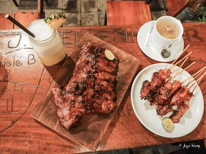 豬肋排算是來峇里島推薦食物之一,所以我們不免俗的點了招牌豬肋排,確實是多汁不柴。同樣還點了沙嗲,因為即將要前往澳洲了對於飲食有無限的不期不待沒有傷害 (?)