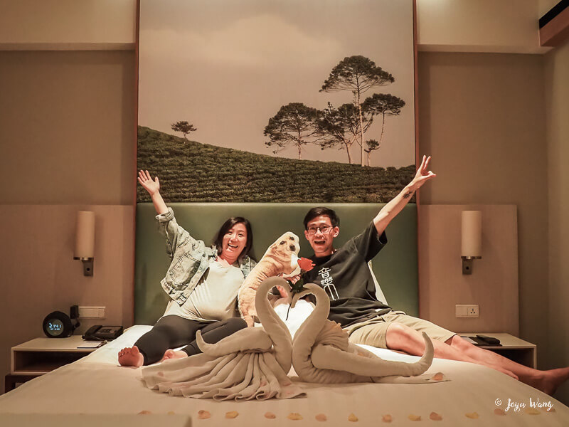 真實住宿還是想分享一下實際感受,訂購時會詢問你喜歡的枕頭類型,並可以附註是否有特殊事項,我註明了是渡蜜月;不過check in時發現好像枕頭並沒有改變,用晚餐外出時就跟櫃台反應,可能是這時候他們才注意到我的備註,用餐回來就看到可愛的天鵝哈哈哈哈!